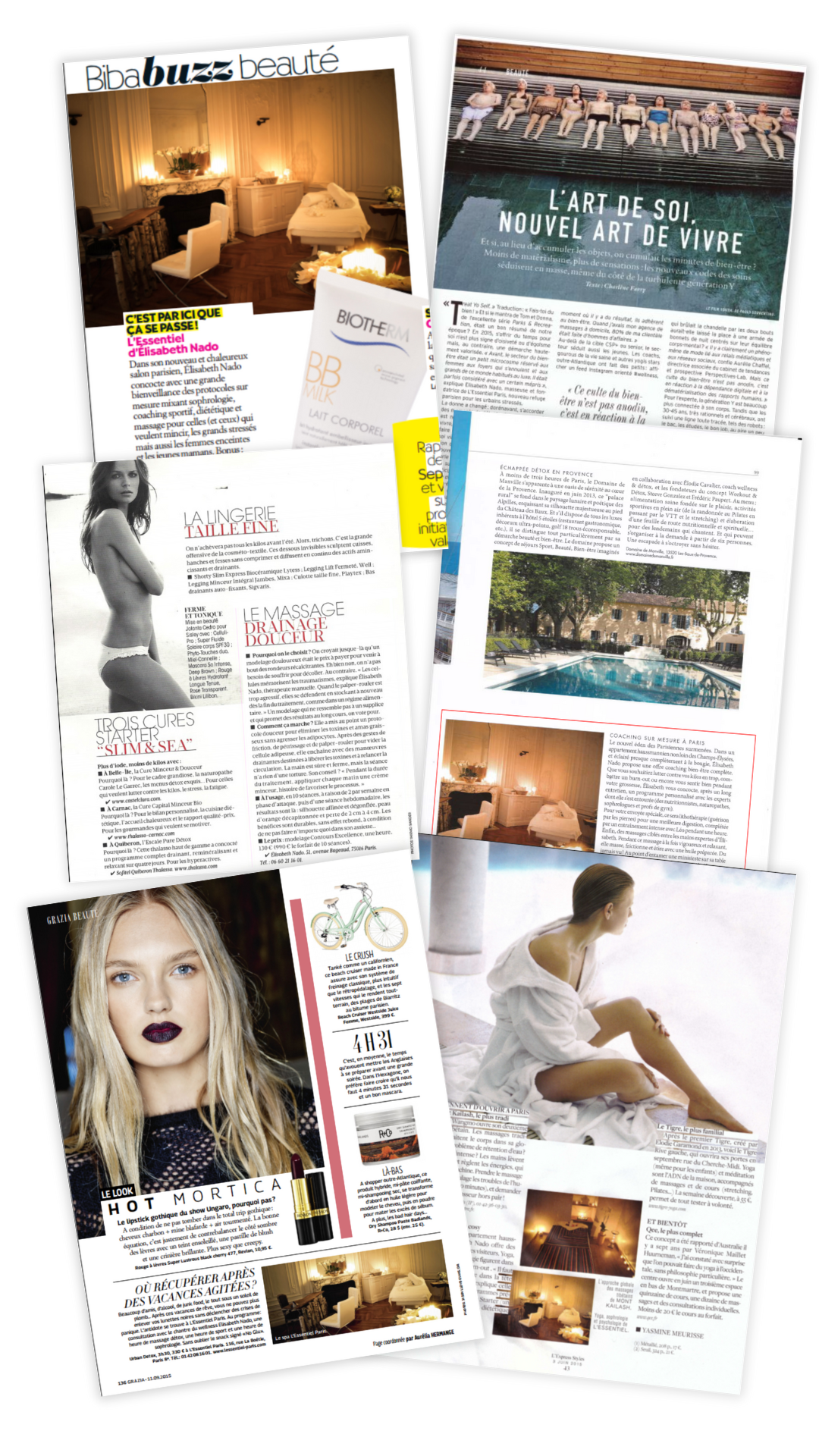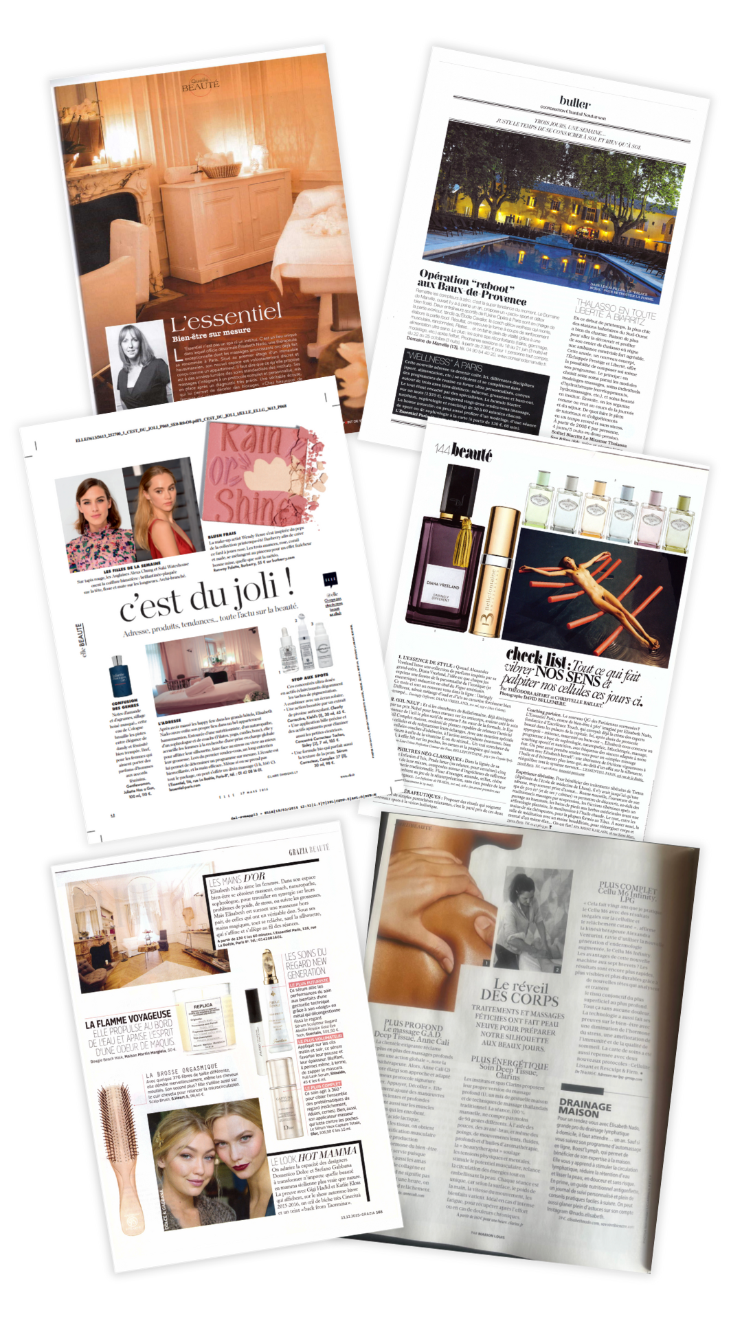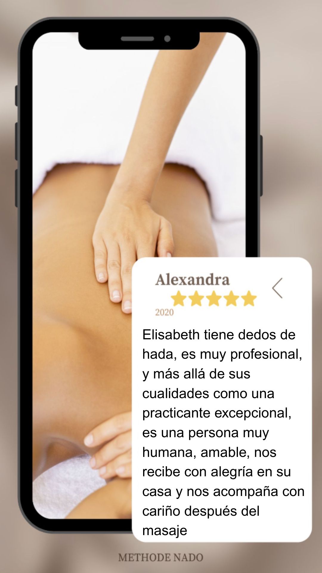 Este concepto fue inventado por Elisabeth Nado: gran profesional de la belleza y el bienestar, terapeuta manual, ha desarrollado numerosas masajes para spas de todo el mundo, ha masajeado a numerosas personalidades antes de dedicarse a los domicilios rodeándose de colaboradoras de alto nivel.